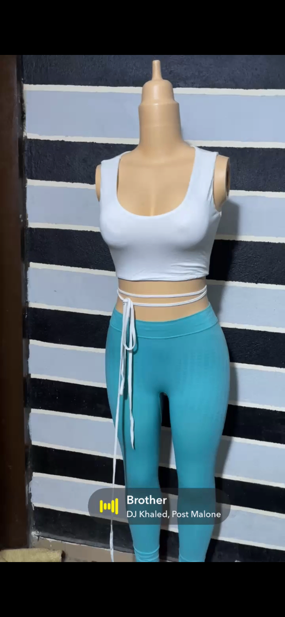 Découvrez un ensemble de sport chic pour femme, composé d'un top court blanc et de leggings turquoise. Parfait pour l'entraînement ou la tenue décontractée, cet ensemble offre confort et style. Idéal pour le fitness, le yoga ou les promenades en ville, il combine allure moderne et praticité. Un choix parfait pour celles qui souhaitent rester actives tout en étant à la mode.