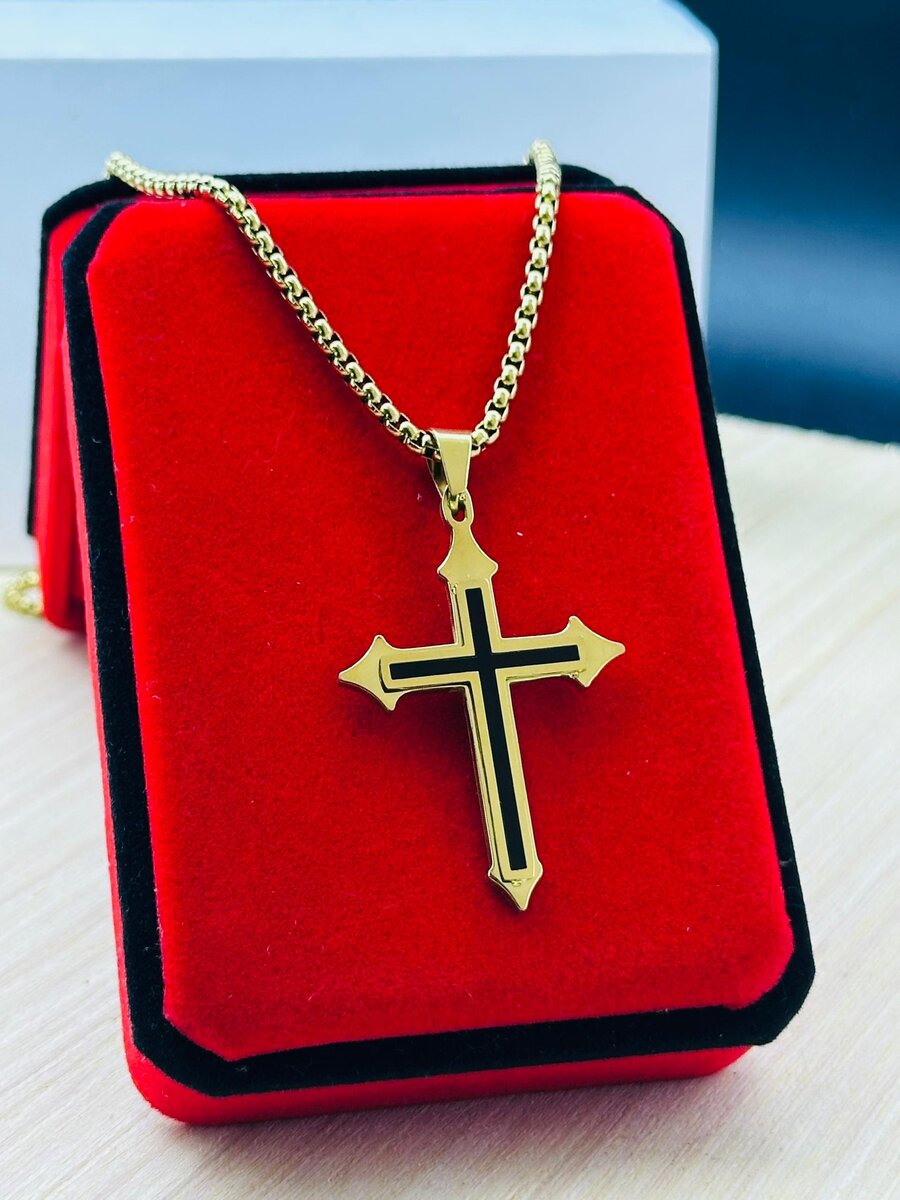 Un magnifique collier avec une croix en acier inoxydable, idéal pour les hommes. Conçu pour durer, ce bijou symbolise la foi et la protection. Parfait pour un usage quotidien.