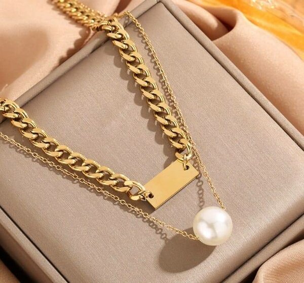 Ajoutez une touche d'élégance à votre tenue avec ce collier chaîne en or orné de perles. Conçu pour les femmes qui aiment la bijouterie raffinée, il convient parfaitement pour des occasions spéciales ou pour une utilisation quotidienne.