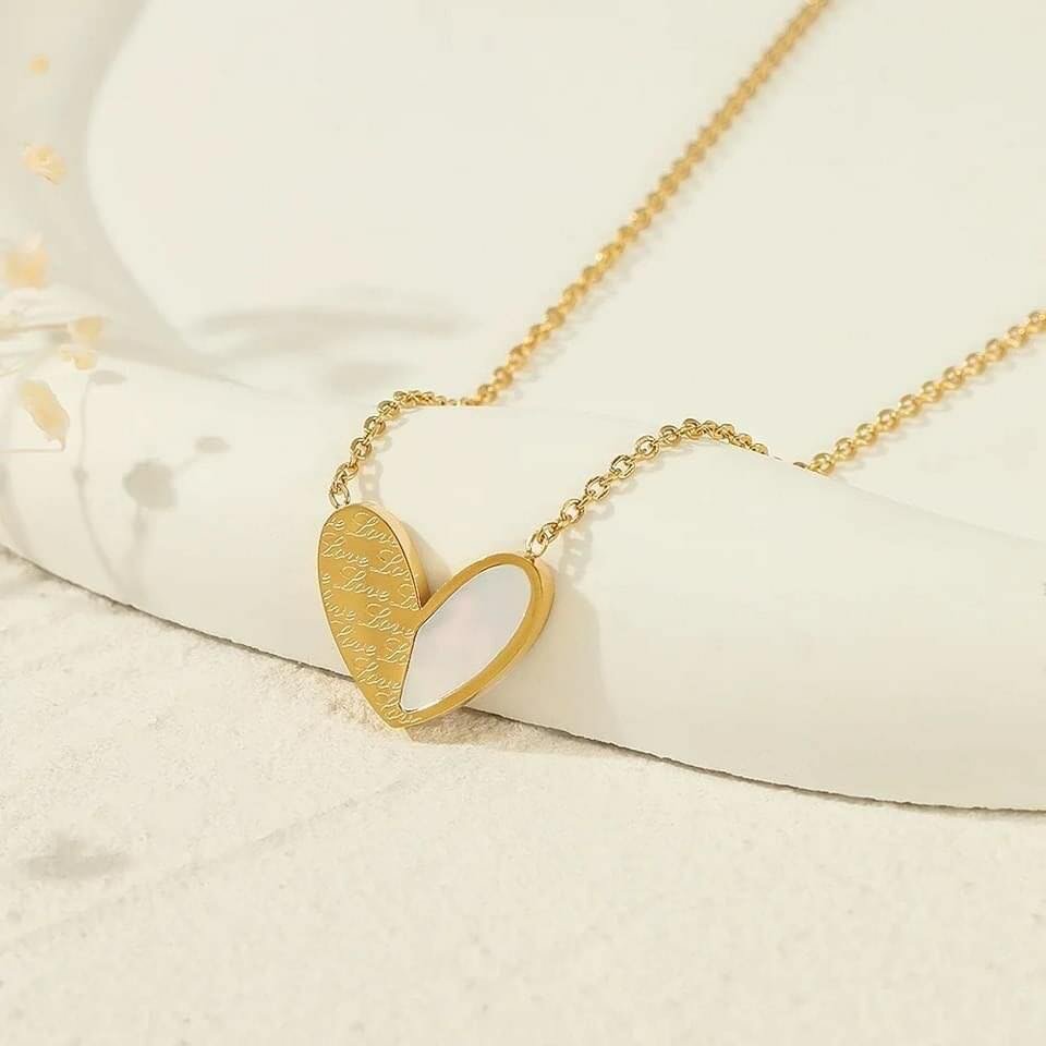Élégant collier en forme de cœur avec une finition dorée et un détail en émail blanc. Idéal pour ajouter une touche d'amour à votre tenue quotidienne ou comme cadeau romantique. Conçu pour tous les styles, il complète parfaitement votre collection de bijoux.