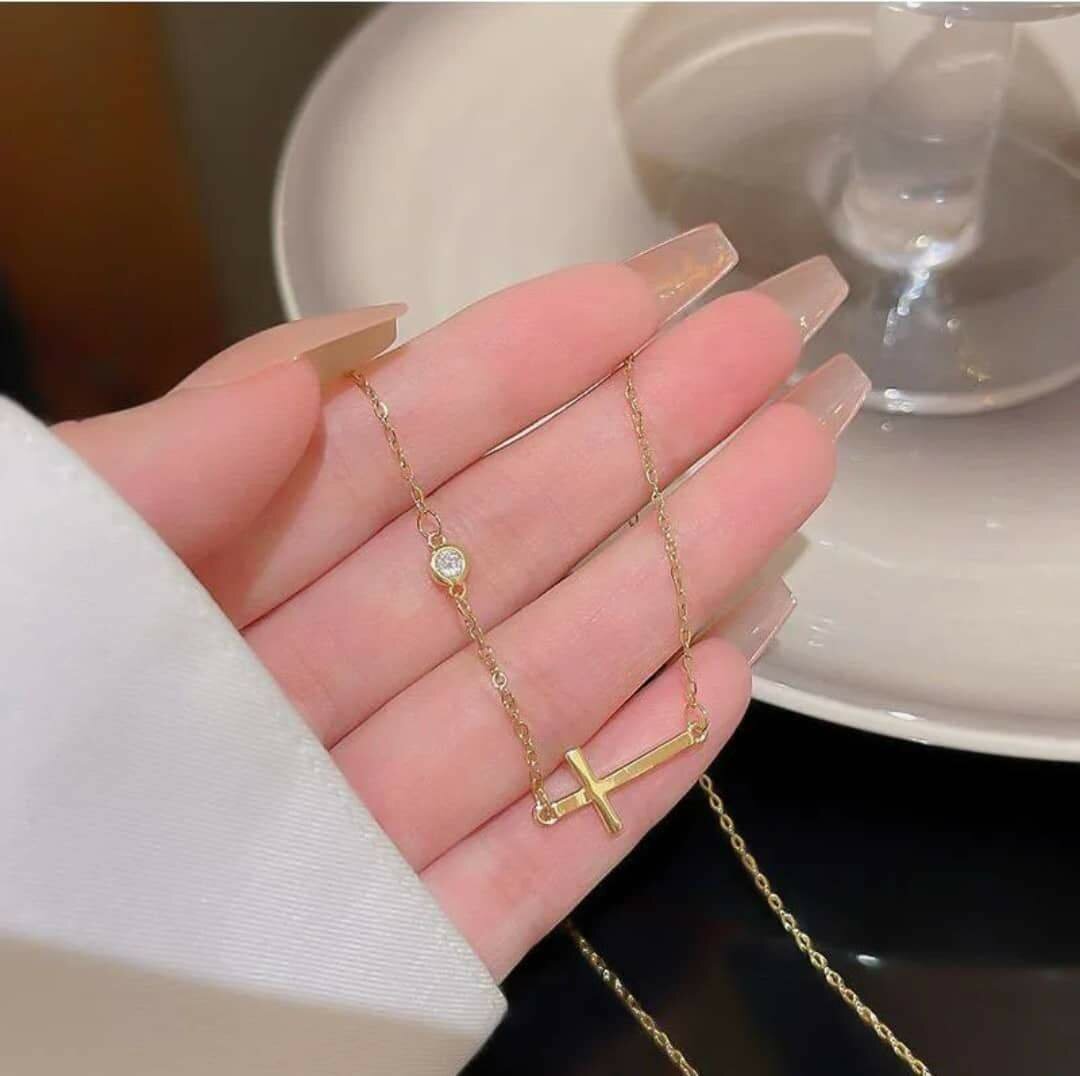 Magnifique collier en or avec pendentif croix et pierre scintillante. Parfait pour sublimer votre style quotidien ou pour un look raffiné. Idéal pour un cadeau spécial ou pour compléter votre collection de bijoux.