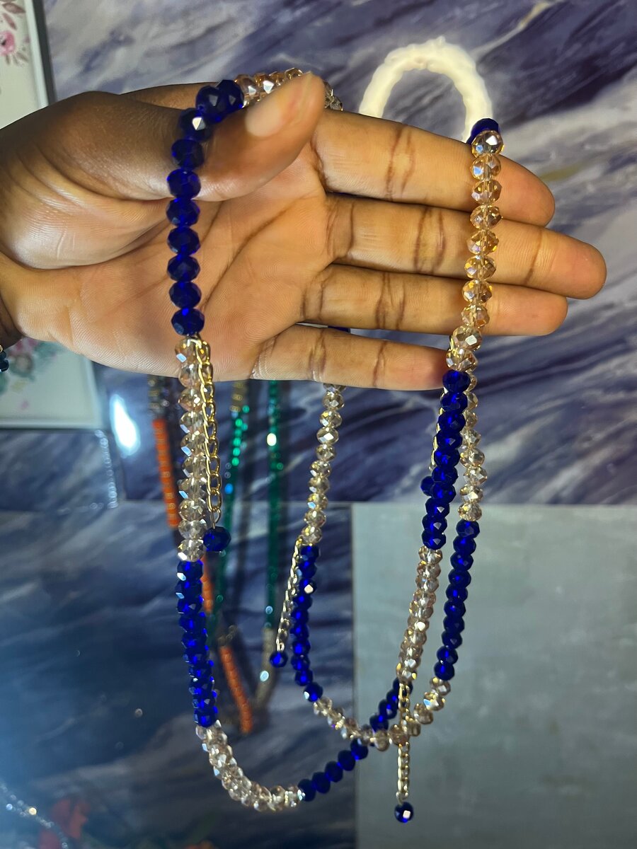 Découvrez ce collier de perles précieuses, parfait pour sublimer vos tenues. Avec ses perles bleues et translucides, il ajoute une touche d'élégance discrète. Parfait pour toutes les occasions, du quotidien aux événements spéciaux. Un choix idéal pour cadeau!