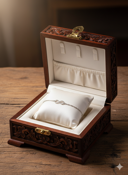 Découvrez ce collier luxueux présenté dans un écrin en bois élégant. Parfait pour les occasions spéciales, ce bijou élégant ajoutera une touche de sophistication à votre tenue.
