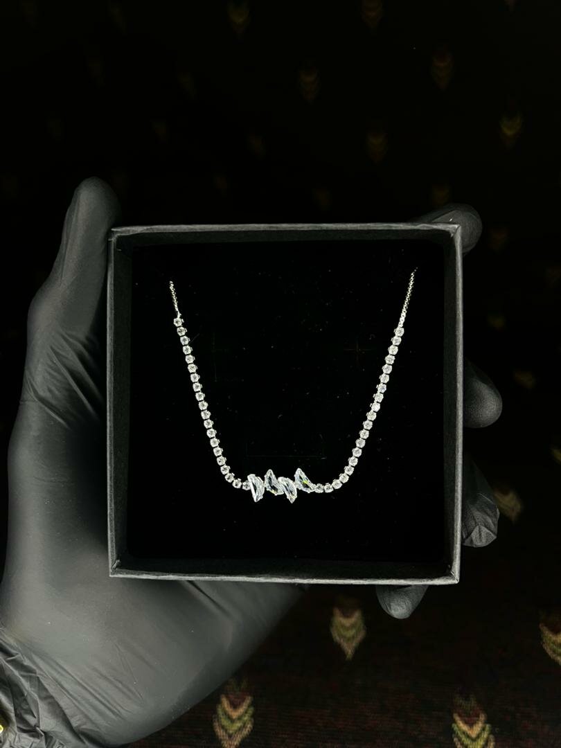 Ce magnifique collier incrusté de cristaux brillants est le choix parfait pour ajouter une touche d'élégance à n'importe quelle tenue. Idéal pour des occasions spéciales ou pour offrir en cadeau à un être cher. Fabriqué avec une attention particulière aux détails, il souligne votre raffinement et votre style unique.