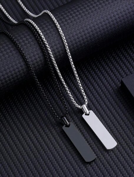 Collier pendentif rectangulaire en acier