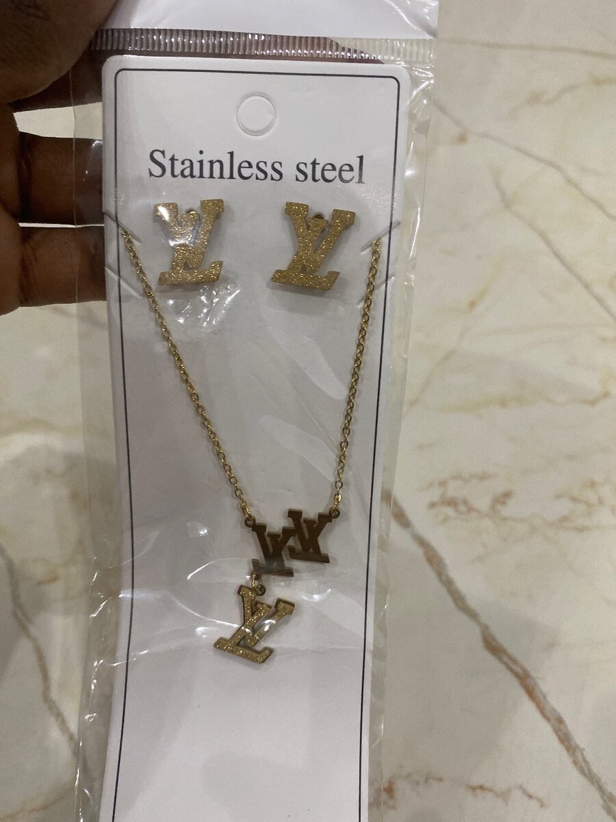 Élégant collier et boucles d'oreilles en acier inoxydable doré. Idéal pour une touche de glamour au quotidien ou une tenue de soirée. Résistant et sans allergènes. Parfait pour offrir ou se faire plaisir.