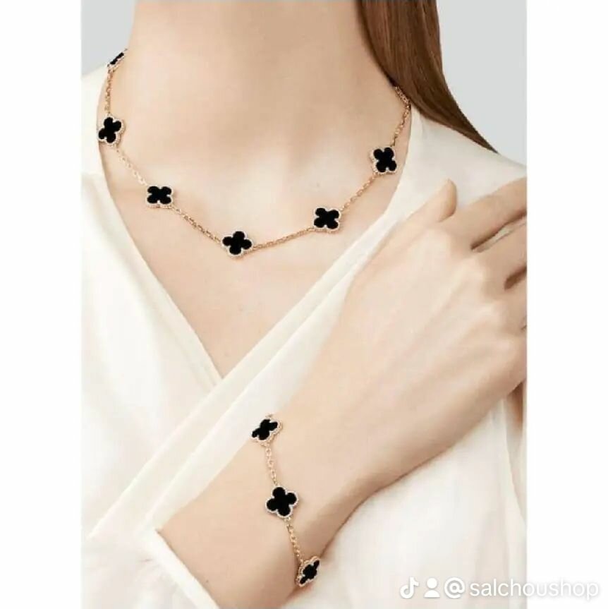 Ajoutez une touche d'élégance avec ce superbe ensemble collier et bracelet orné de motifs trèfle noir. Parfait pour souligner votre style lors des occasions spéciales, cet ensemble est le choix idéal pour les passionné(e)s de mode. Fabriqué avec des matériaux de haute qualité pour un look sophistiqué et durable. Convient aussi bien pour un usage quotidien que pour des événements formels. Offrez-vous ce bijou exceptionnel et faites tourner les têtes!