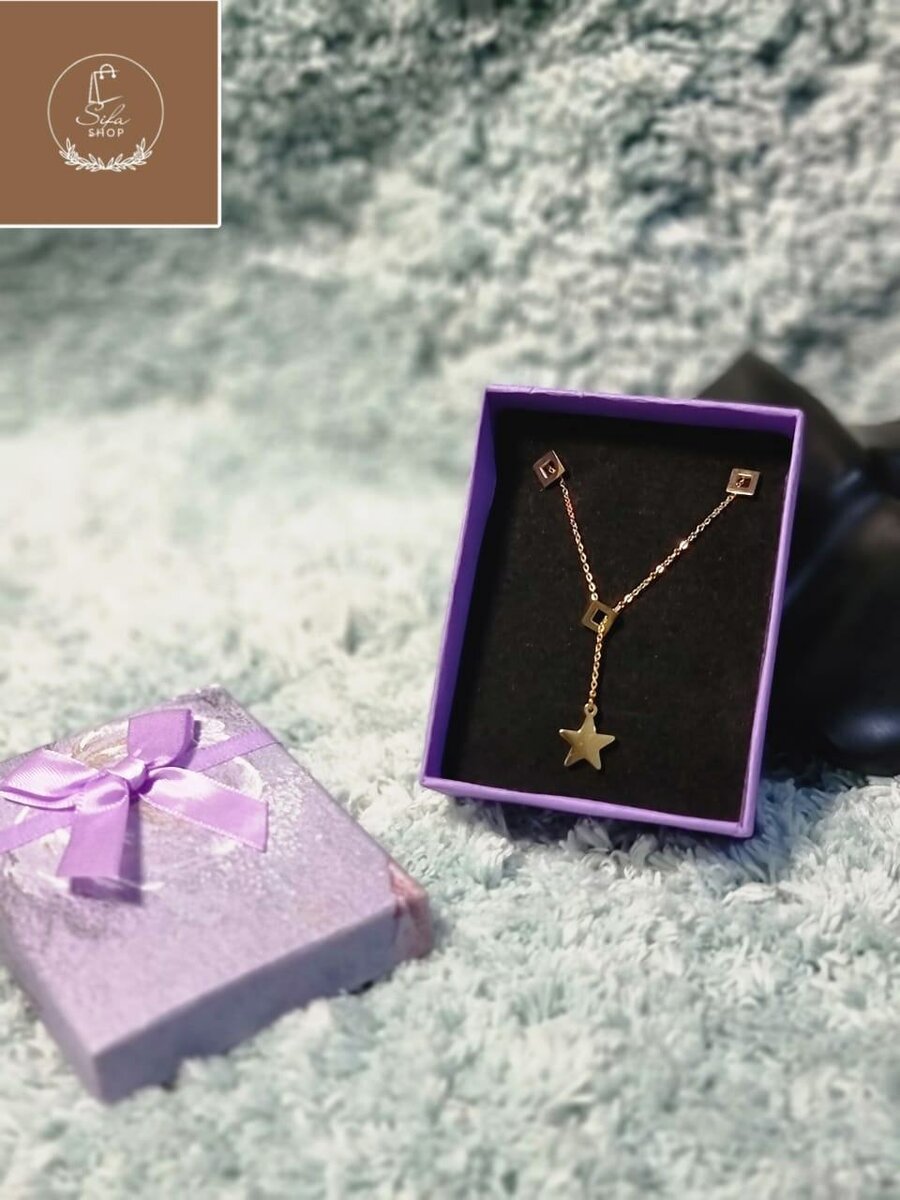 Sublime collier avec pendentif étoile en or, idéal pour ajouter une touche de glamour à votre tenue. Présenté dans un coffret cadeau prêt à offrir, ce bijou est parfait pour les occasions spéciales ou comme cadeau mémorable. Sa chaîne délicate en fait un choix raffiné pour les amateurs de mode.