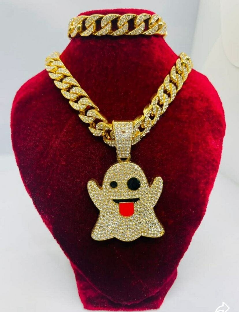 Optez pour ce collier doré orné d'un pendentif fantôme scintillant. Idéal pour ajouter une touche ludique et originale à votre style. Parfait pour les sorties en soirée ou les événements spéciaux.