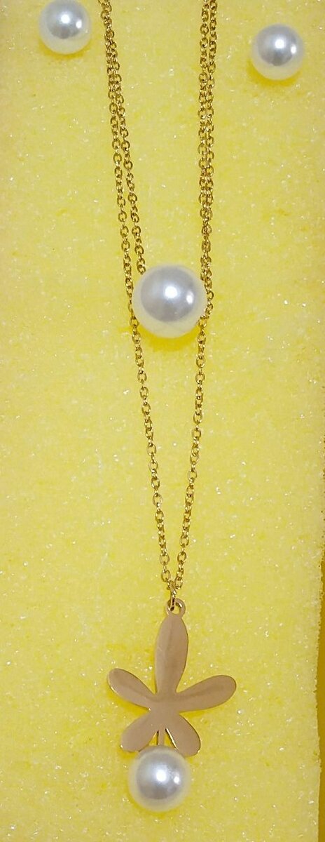 Élégant collier avec pendentif de fleur dorée et perles. Parfait pour ajouter une touche sophistiquée à votre tenue. Idéal pour les occasions spéciales ou un usage quotidien.