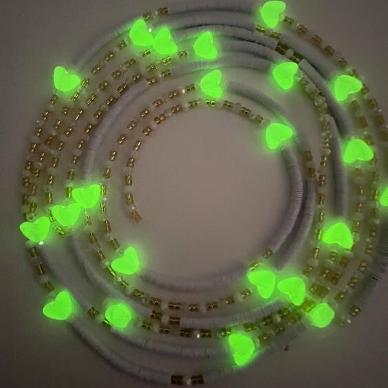 Élégant collier avec perles en forme de cœur qui s'illuminent dans le noir. Parfait pour soirées et événements spéciaux. Style unique et accrocheur garantissant une allure sophistiquée. Un accessoire idéal pour se démarquer et briller.