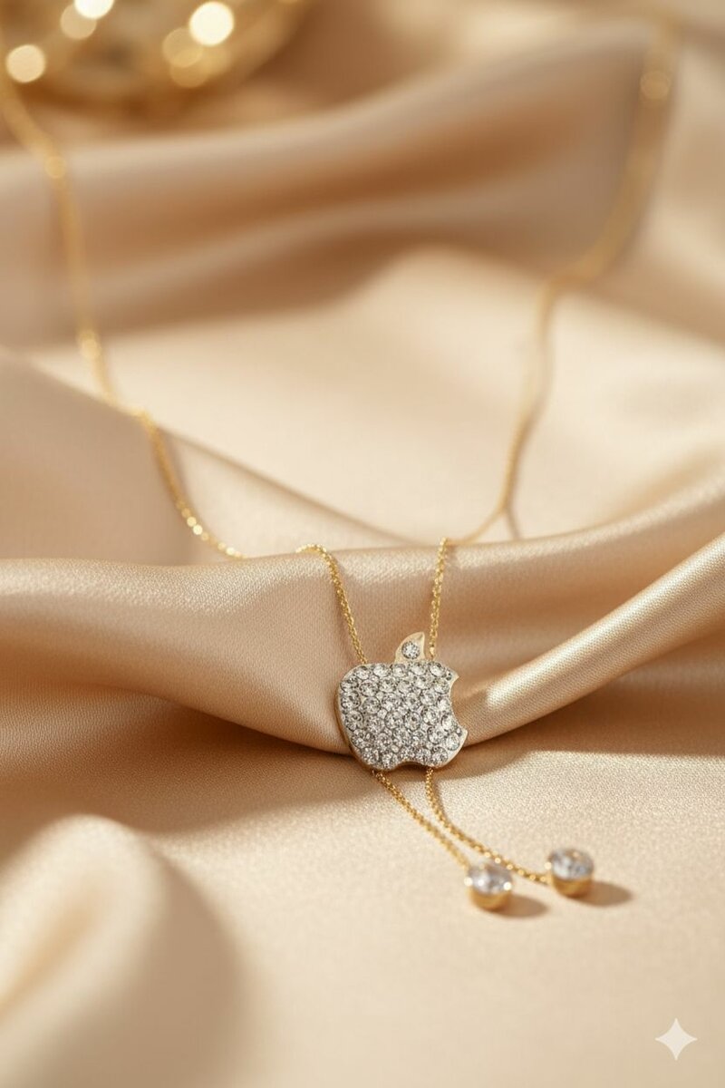 Magnifique collier en or avec pendentif en forme de pomme incrusté de diamants. Parfait pour ajouter une touche d'élégance à toute tenue.