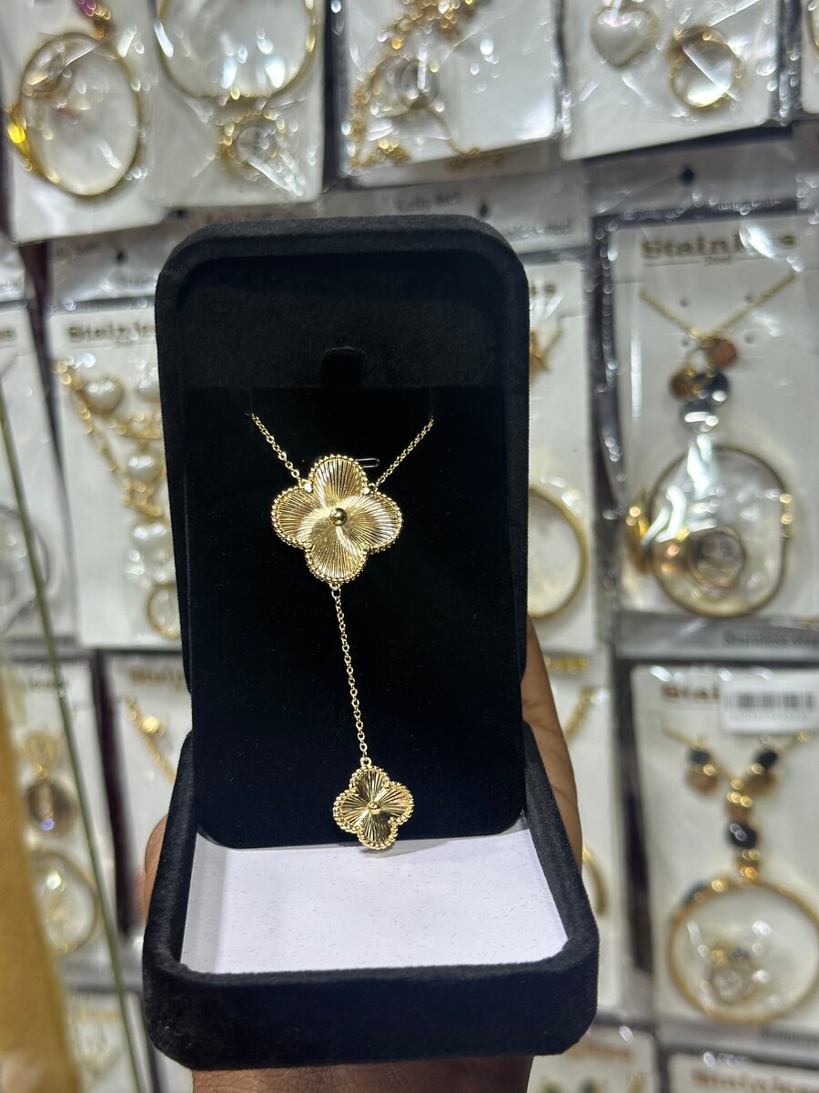 Sublimez votre tenue avec ce collier pendentif en forme de fleur dorée. Idéal pour ajouter une touche d'élégance à vos occasions spéciales ou à votre look quotidien. Ce bijou attire le regard et souligne votre style unique.