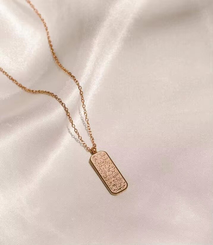 Découvrez notre collier pendentif rectangle élégant, Ayatul Krusi disponible en or, argent , rose et Noir Idéal pour sublimer vos tenues avec une touche de sophistication et de raffinement. Confectionné avec soin, il s'adapte parfaitement à toute occasion, Offrez-vous ce bijou intemporel ou faites plaisir à vos proches avec un cadeau qui marquera les esprits.