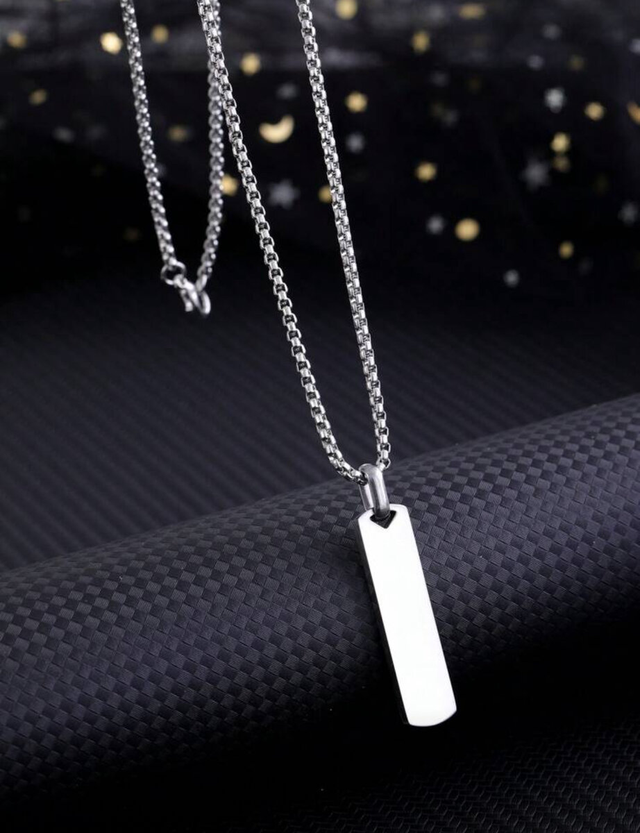 Élégant collier avec pendentif rectangulaire en acier inoxydable. Idéal pour toutes occasions, accentue votre style avec simplicité et sophistication. Parfait pour les hommes et les femmes.