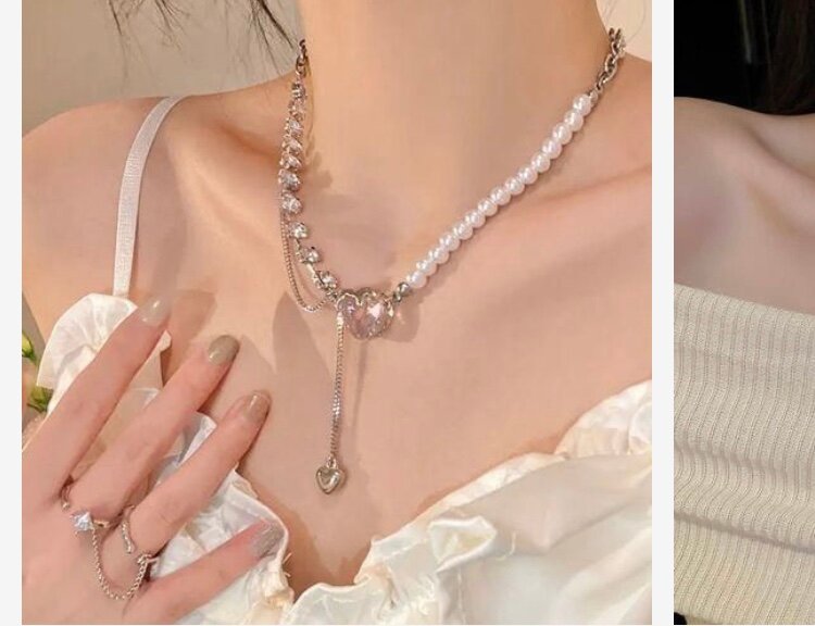 Charmant collier double rang avec perles et pendentif cœur. Un mélange élégant de glamour et de romantisme, parfait pour sublimer toute tenue. Parfait pour un usage quotidien ou des occasions spéciales.