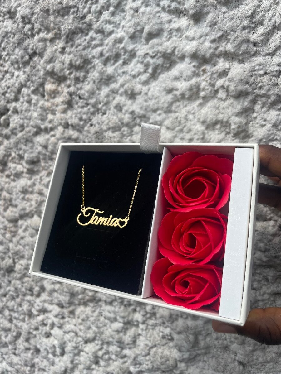 Optez pour un collier personnalisé en or, élégant et unique, qui ajoute une touche personnelle à votre style. Parfait pour offrir en cadeau ou pour se faire plaisir, ce bijou met en valeur votre prénom ou celui d'un être cher. Sa finition douce et ses ornements délicats en font un choix idéal pour toutes les occasions.