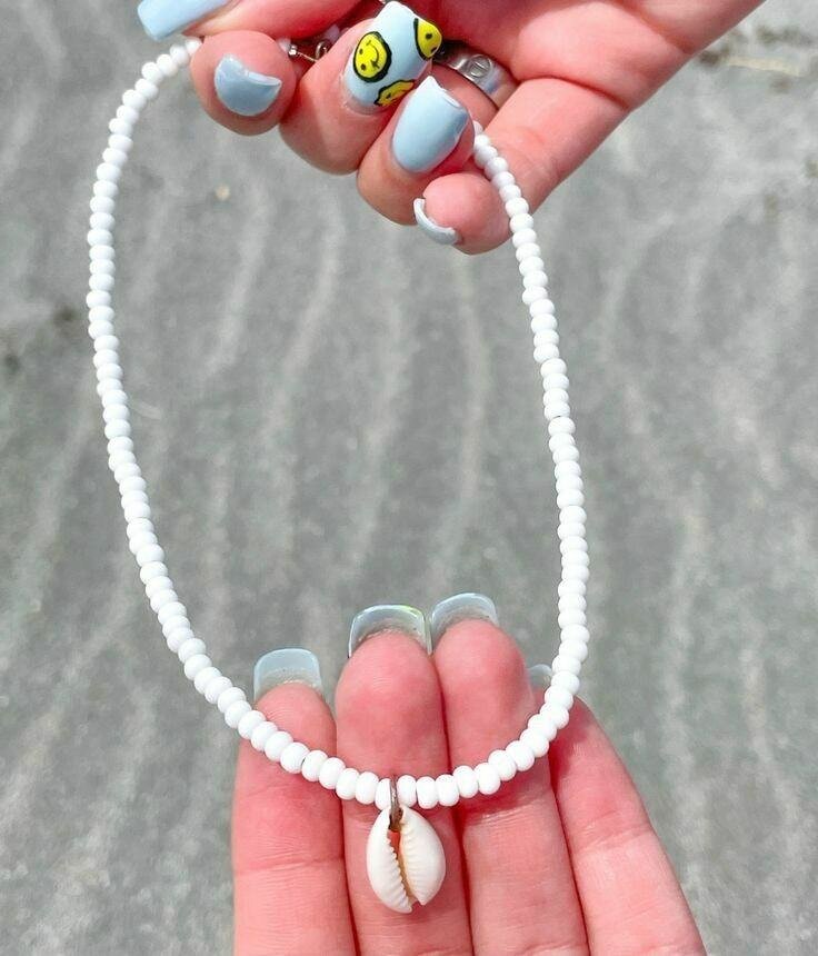 Collier en perles personnalisé, orné d'un pendentif coquillage élégant. Idéal pour un style décontracté ou une sortie à la plage. Fabriqué à la main.