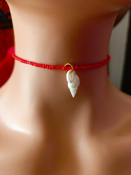 Choker coquillage rouge élégant