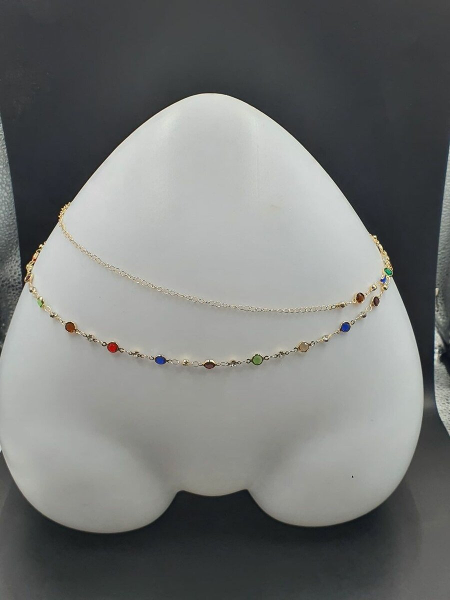 Add a splash of color to your outfit with this elegant choker necklace, featuring vibrant gemstones set in a delicate chain. Perfect for casual or formal wear, this necklace is a versatile addition to any jewelry collection.