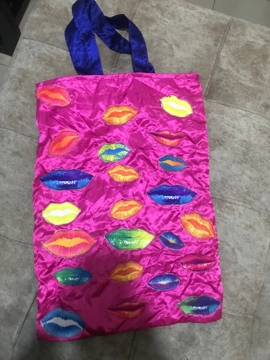 Stand out with this vibrant pink tote bag featuring colorful lips design. Perfect for shopping, beach days, or everyday use. Durable and stylish with comfortable handles. Ideal for those who love unique and playful accessories.