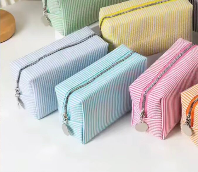 Brighten your day with these colorful striped makeup bags. Perfect for organizing cosmetics, toiletries, or stationery. Durable material and easy-zip design make them ideal for daily use. A stylish and functional choice for home or travel.