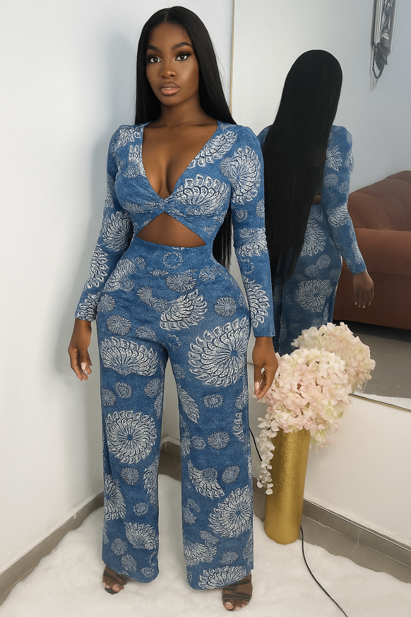 Combi à motifs jeans fleuri