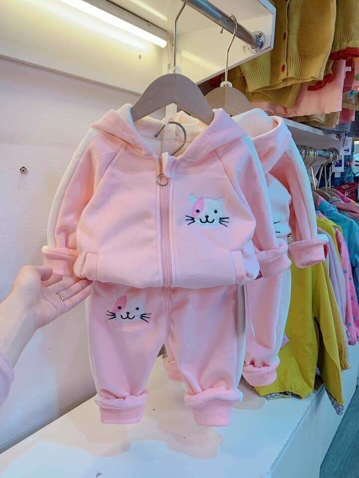 Combinaison bébé fille rose avec motif chat. Douce et confortable pour les tout-petits.