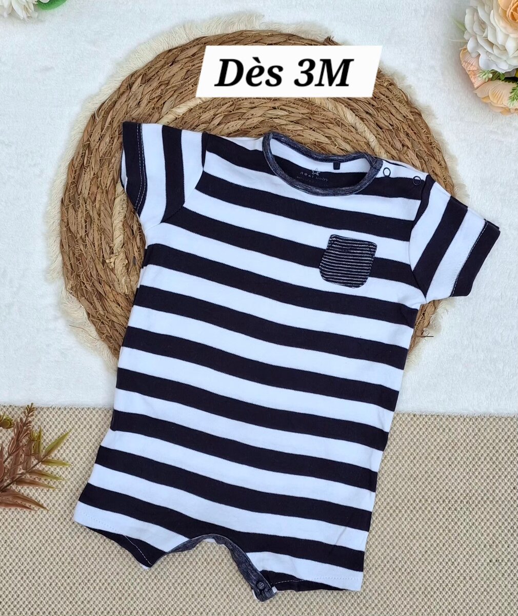 Combinaison bébé 3M rayée bleu et blanc pour un look élégant. Confortable et facile à porter. Idéal pour les sorties décontractées.