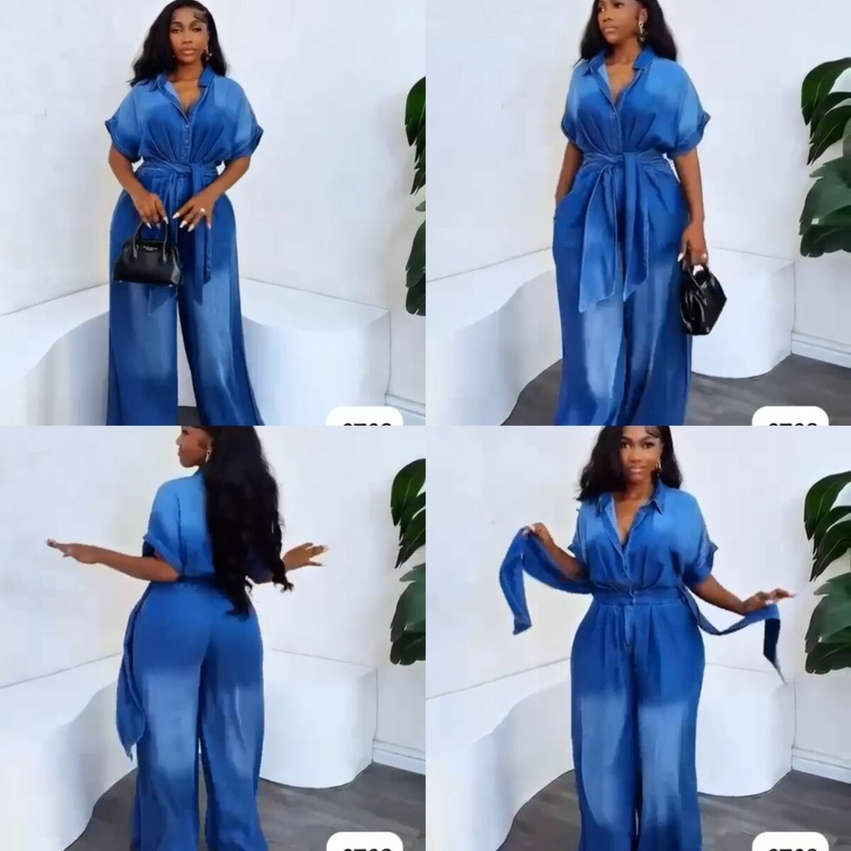 Cette combinaison bleue pour femme offre un style chic et moderne, parfaite pour les occasions spéciales ou pour rehausser votre look quotidien. Conçue avec une ceinture élégante, elle accentue la silhouette tout en offrant un confort ultime. Idéale pour les sorties en soirée ou les événements professionnels.