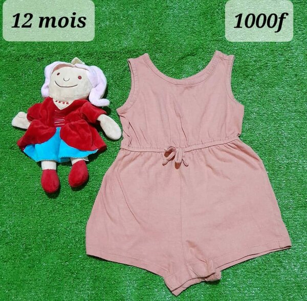 Salopette pour fille, coton, couleur pêche, 12 mois