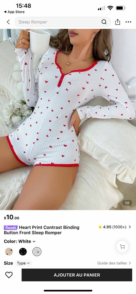 Douce et confortable, cette combinaison de nuit à motifs cœurs et bordure contrastée est idéale pour des nuits douillettes. Avec sa coupe élégante, elle offre un look tendance même au coucher.