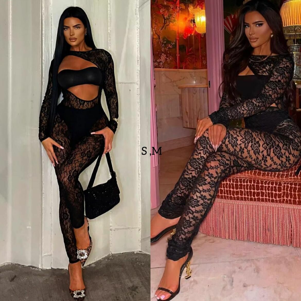 Cette élégante combinaison en dentelle noire est parfaite pour une soirée glamour. Moulante et audacieuse, elle met en valeur vos courbes avec style. Idéale pour celles qui aiment faire tourner les têtes, elle se porte aussi bien en club qu'à un événement chic. Fabriquée avec des matériaux de haute qualité pour un confort optimal.