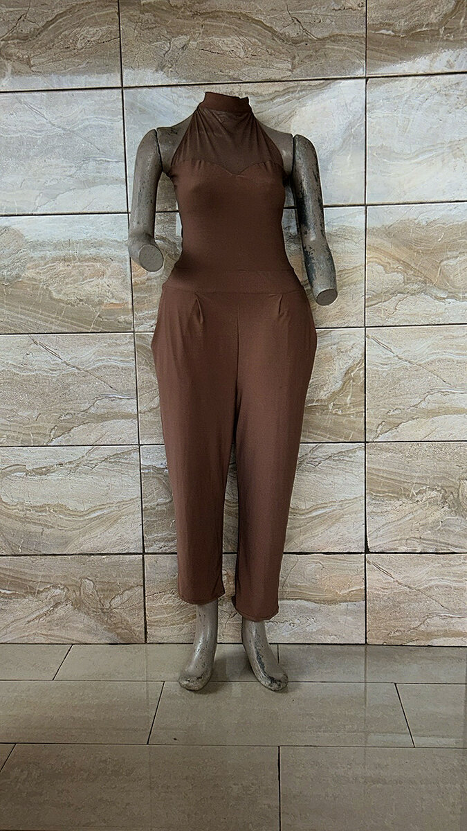 Optez pour cette élégante combinaison marron, idéale pour un look chic et confortable. Parfaite pour les soirées ou sorties décontractées, elle épouse la silhouette avec élégance. Conçue avec un dos ouvert et une fermeture éclair, elle assure confort et style.