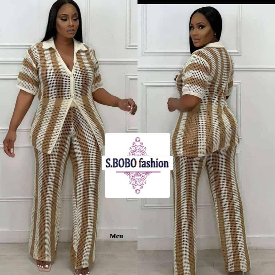 Élégante combinaison en maille rayée beige et blanche pour femme. Confortable et chic, idéale pour un look décontracté tout en restant sophistiqué. Parfait pour un usage quotidien ou des occasions spéciales. Un incontournable pour toute garde-robe tendance.