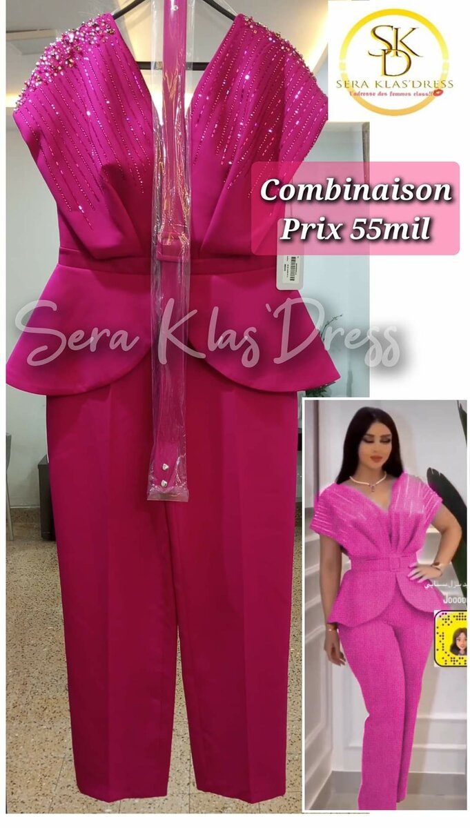 Élégante combinaison rose ornée de paillettes, parfaite pour une soirée glamour. Confortable et chic, elle souligne votre silhouette avec style. Idéale pour se démarquer lors des événements spéciaux.