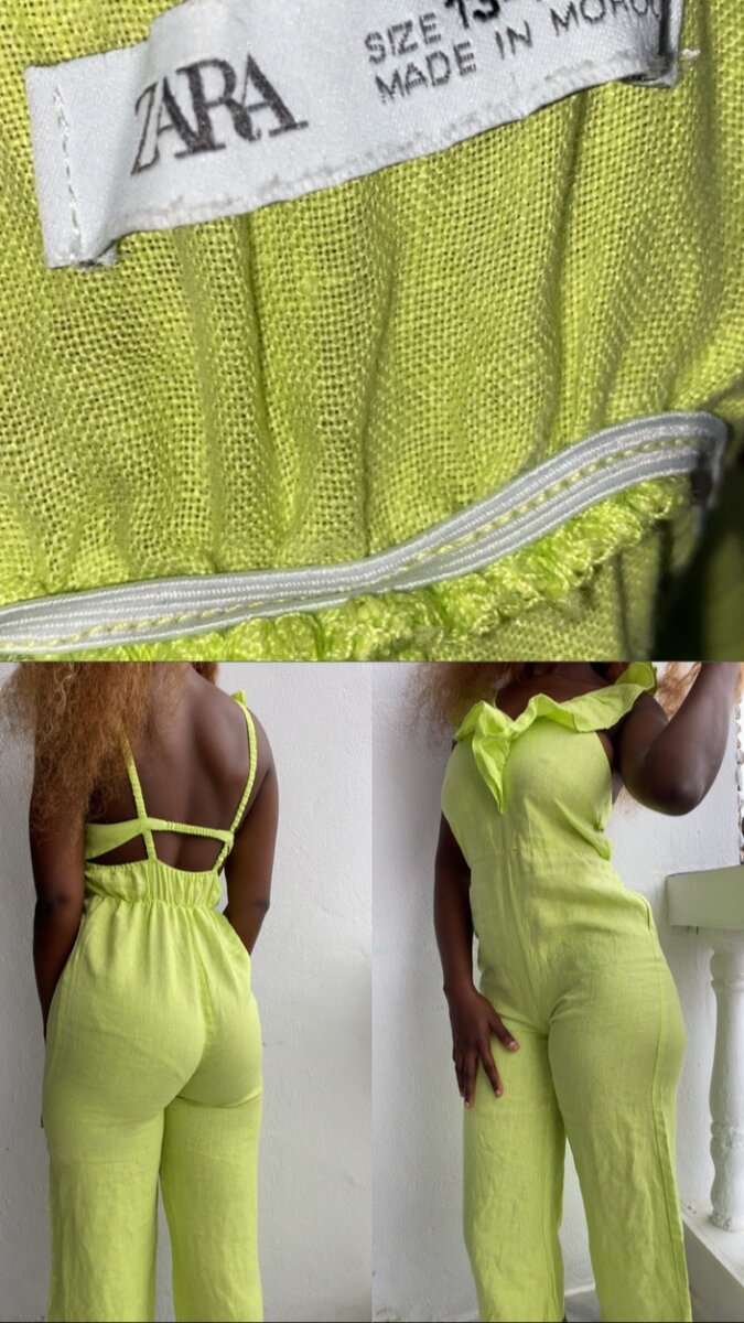 Optez pour cette combinaison Zara, idéale pour un look estival et tendance. Confectionnée en tissu léger vert citron, elle offre confort et style. Les bretelles ajustables et la coupe évasée assurent une silhouette flatteuse. Parfaite pour les sorties décontractées ou une soirée entre amis, cette pièce incontournable s'associe facilement avec des sandales ou des talons.