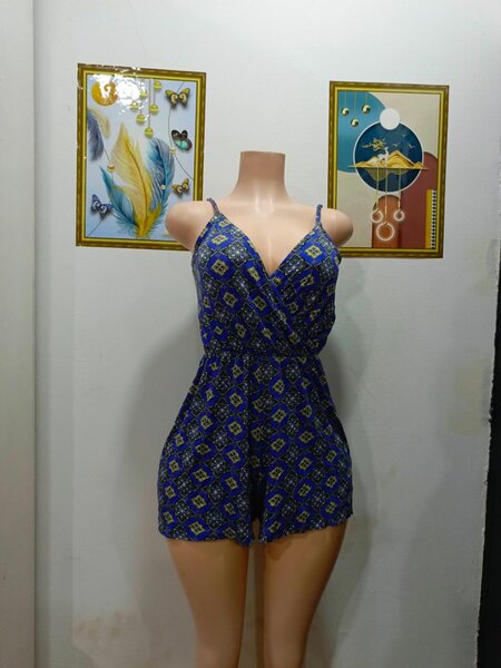 Découvrez ce magnifique combishort pour femme à imprimé fleuri bleu et blanc. Parfait pour l'été, ce vêtement allie confort et style pour toutes vos sorties. Idéal pour se promener en ville ou se détendre à la plage.