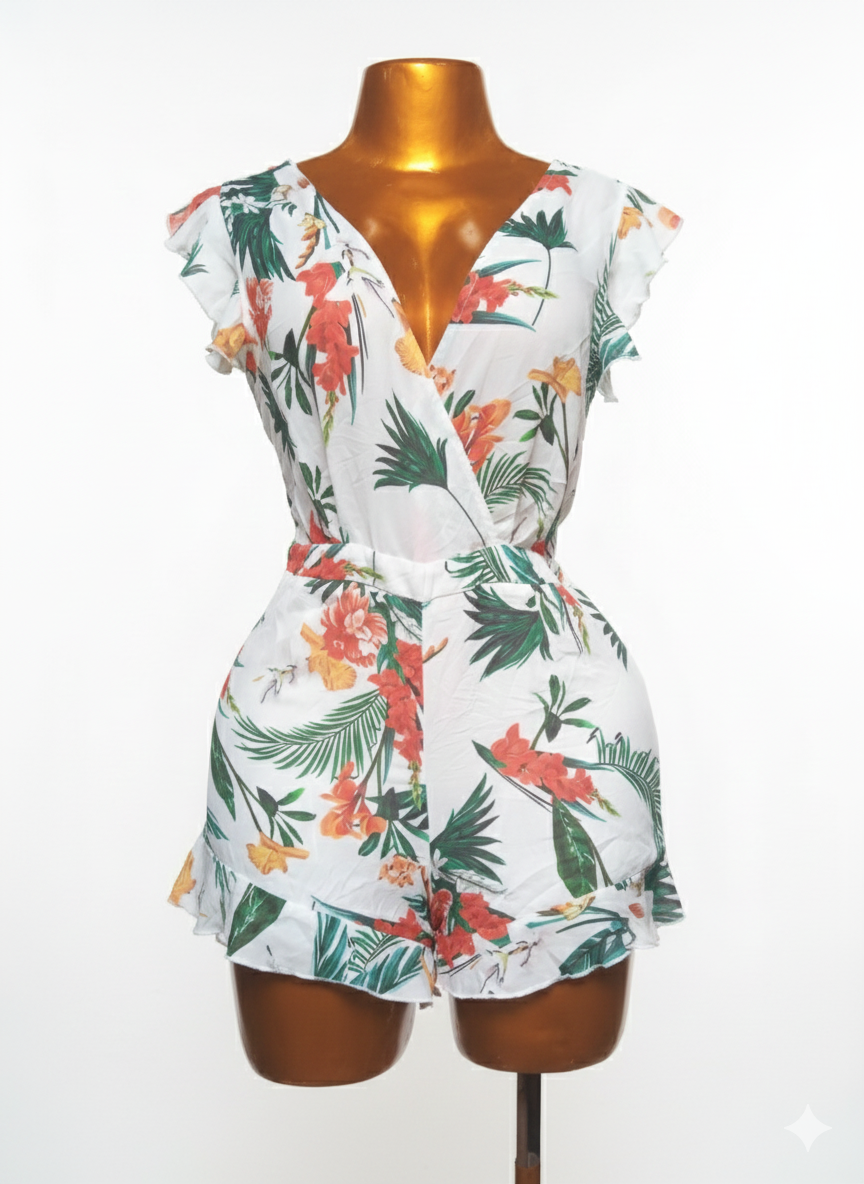 Adoptez un look estival avec ce combishort fleuri à volants. Confortable et tendance, il est idéal pour vos sorties en ville ou à la plage. Son design léger et aéré offre une grande liberté de mouvement, parfait pour les journées chaudes. Ne manquez pas l'occasion de briller cet été avec ce vêtement incontournable.