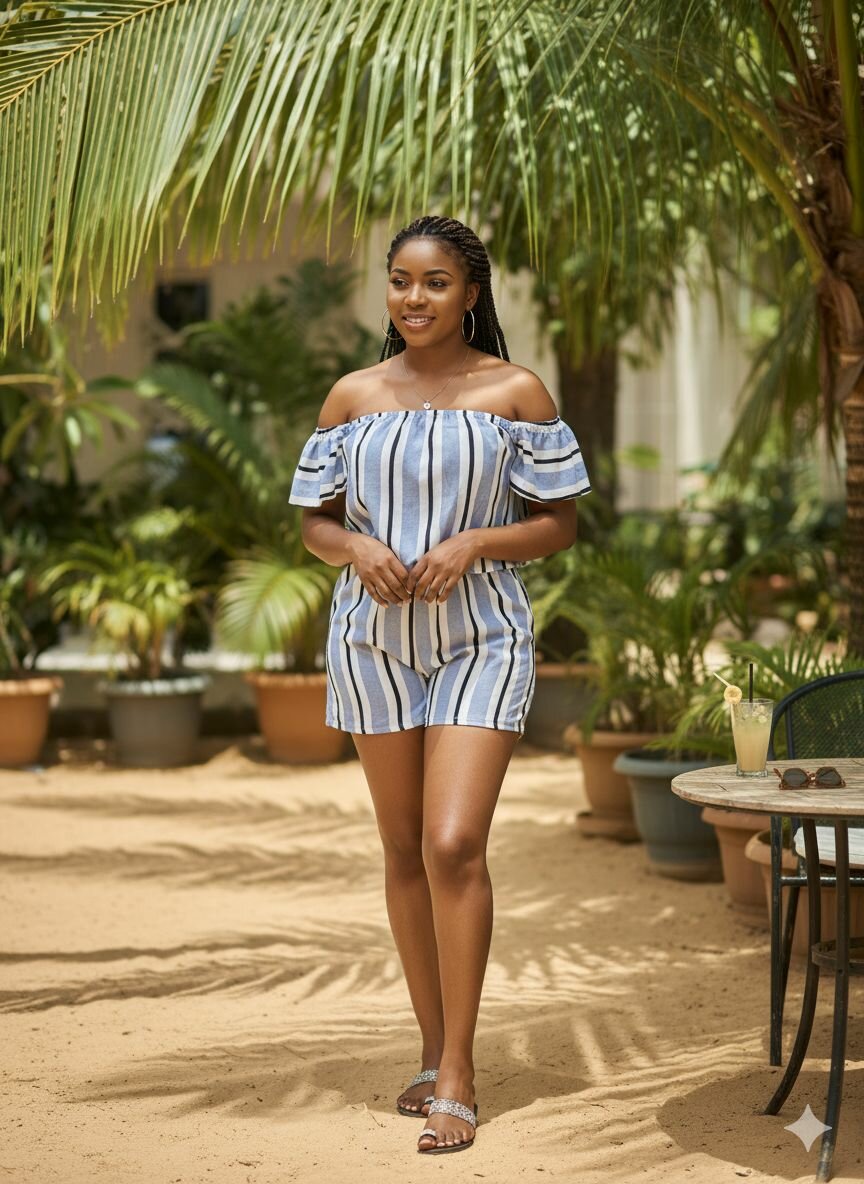 Combi-short rayé d'été
