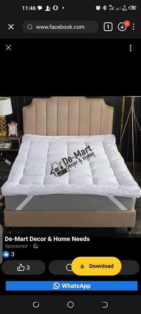 Comfy Toppers for your hard mattresses to prevent body pains and back ache. Soft and Cooling. 100% Quality. *Double Size - 630¢ *Queen Size - 680¢ *King Size (Stand) - 680¢ *Super King Size - 780¢