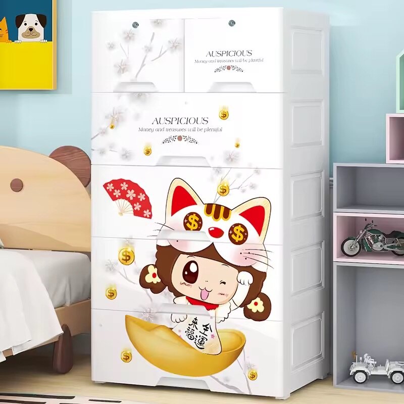 Charmante commode pour enfants avec dessins attractifs. Parfaite pour organiser les vêtements et jouets tout en ajoutant une touche ludique à la chambre. Disponible en plusieurs tailles.
