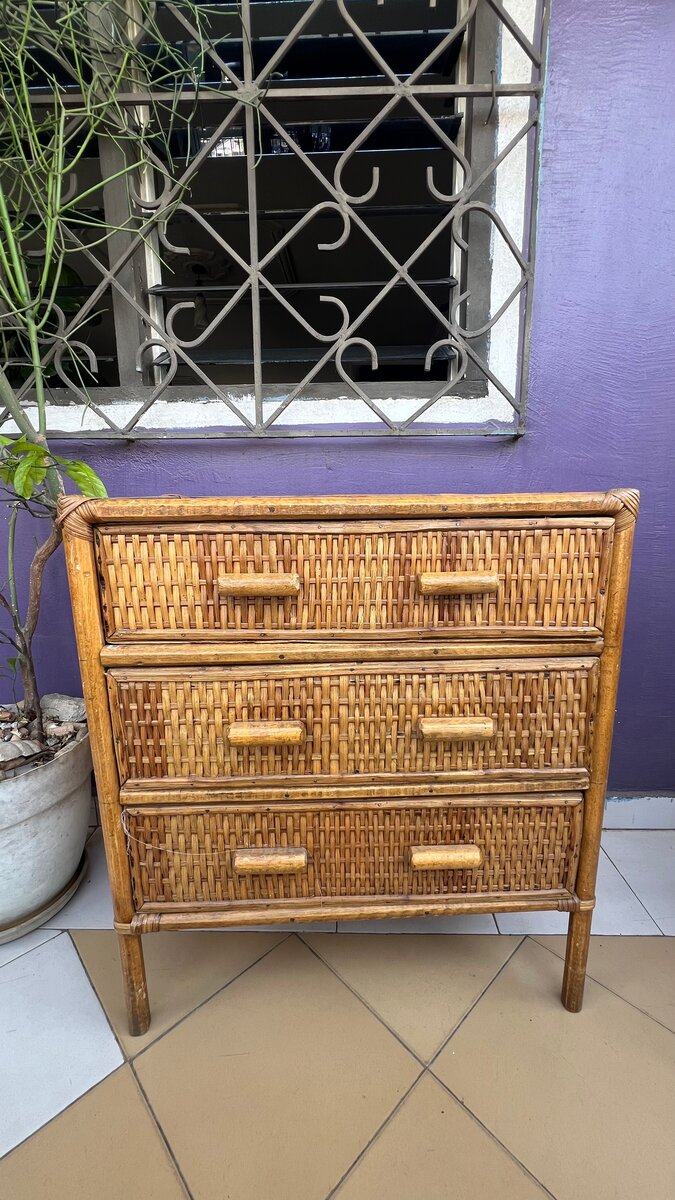 Ajoutez une touche de naturel à votre intérieur avec cette élégante commode en rotin. Dotée de trois tiroirs spacieux, elle est parfaite pour le rangement tout en apportant une esthétique rustique et chaleureuse. Idéale pour une chambre