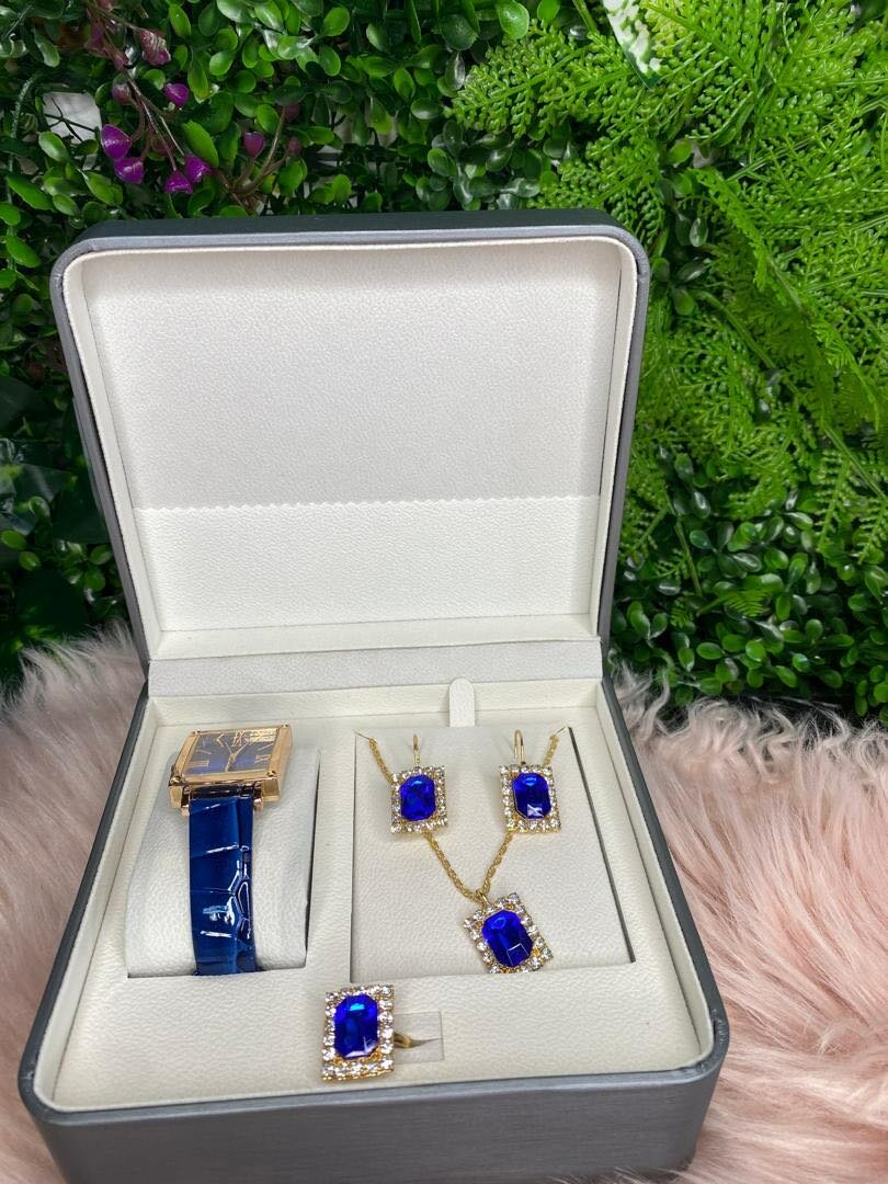 Montre + Chaîne + Bague + Boucles, le tout dans un joli coffret