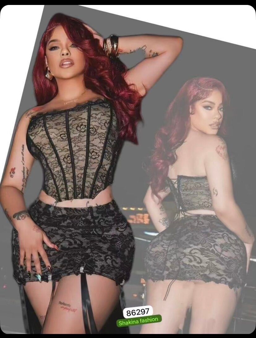 Ajoutez une touche d'élégance et de sensualité à votre garde-robe avec ce complet en dentelle. Parfait pour une soirée spéciale, il soulignera vos courbes avec style. Idéal pour les femmes confiantes, ce complet est conçu pour se démarquer et vous faire sentir unique en toutes occasions. Un must-have pour une allure glamour et séduisante!