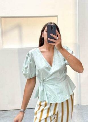 Haut enveloppe verte et jupe blanche