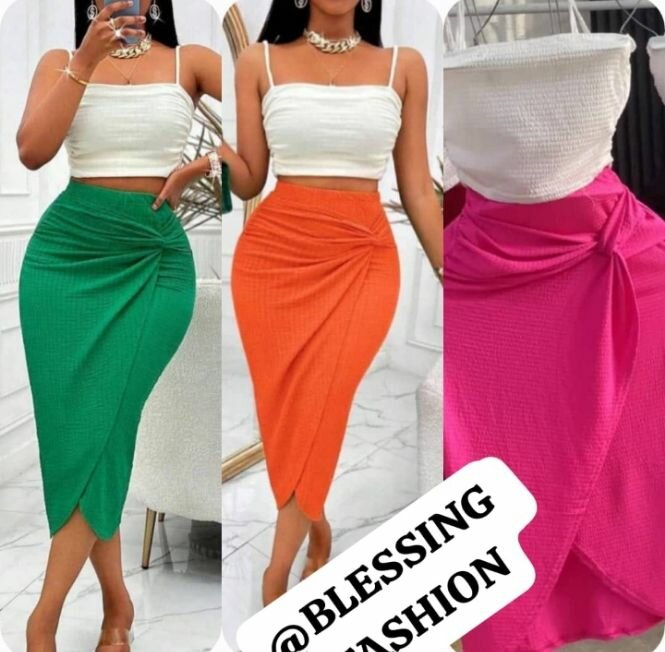 Bon Complet jupe et haut en coton de couleur rose vert orange disponible nouveau arrivage