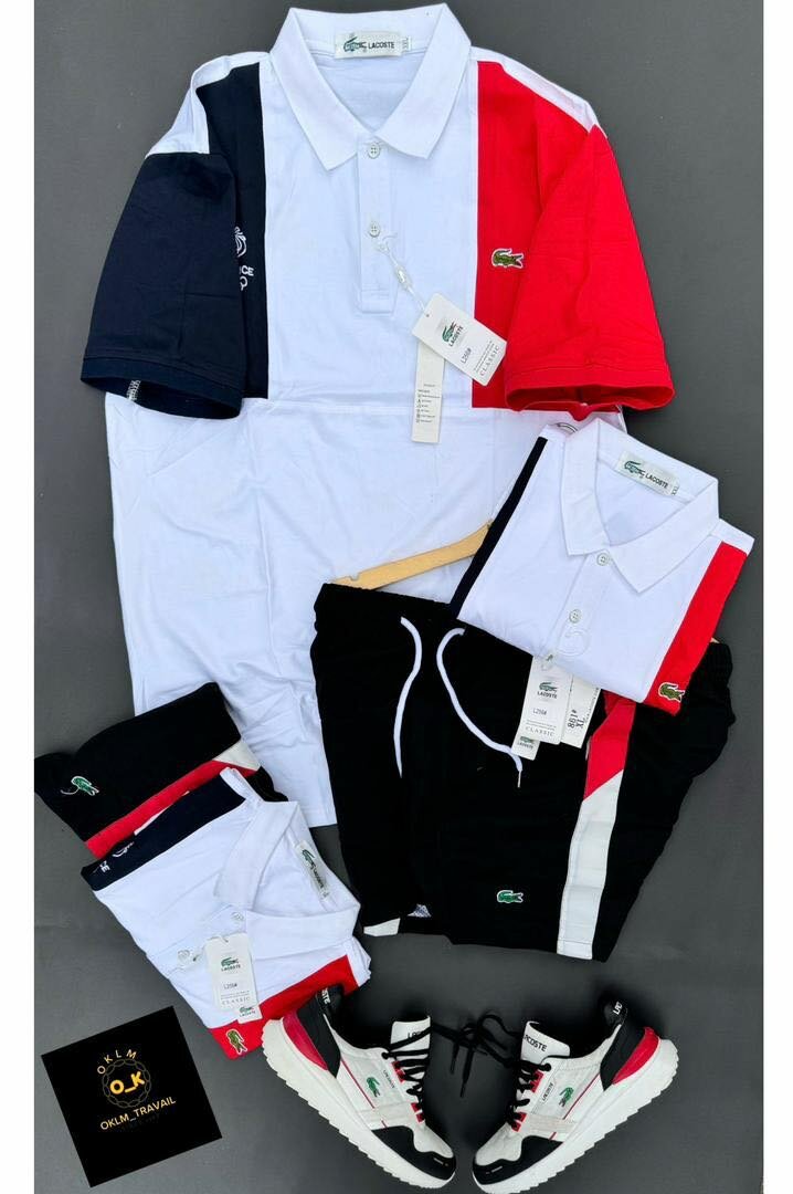 Short et t-shirt Rouge blanc Lacoste pure coton. Taille Disponible Xl XXL ET XXXL