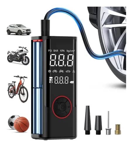 Compresseur d'air portable rechargeable avec power bank pour pneus de voiture, gonflage 3 fois plus rapide, 150 psi, 7500 mAh sans fil avec double écran LED pour voiture, moto, vélo, ballon,