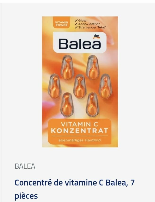 Revitalisez votre peau avec le concentré de vitamine C Balea. Idéal pour un teint éclatant et uniforme. Convient à tous les types de peau. Utilisation simple et efficace pour une routine beauté quotidienne.